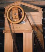 To the left you can see through a window into the elevator: there is a belt with a scoop.