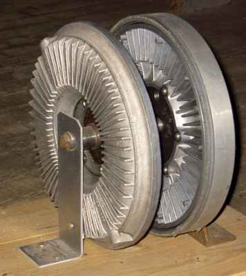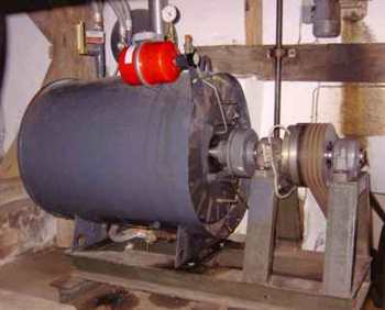 ![]() Das tut es nicht! Die Firma Viessmann entwickelte Ende der 1970er Jahre das sogen. Kinetotherm, ein Gerät, mit dem sich Bewegungsenergie direkt in Wärmeenergie umwandeln läßt. Herzstück dieses Kinetotherms ist ein Retarder, der auch in LKWs als verschleißfreie Bremse Verwendung findet. Der mit Öl gefüllte Retarder besteht aus zwei Schaufelrädern, von denen eines das Öl durch die Drehbewegung beschleunigt und das andere wieder abbremst. Die dabei entstehende Wärme wird an das Wasser eines Wärmetauschers abgegeben. Die Gemeinde Stuhr entschloss sich damals, diese Technik in der Klostermühle einzusetzen und damit auch hier einen Beitrag zur umweltfreundlichen Energiegewinnung zu leisten. Das Kinetotherm hat bei einer Drehzahl von 400 min-1 eine Leistung von ca. 10 kW und heizt das Wasser auf etwa 600C auf. Dieses Wasser unterstützt die Heizung für das Müllerwohnhaus. Drehzahlschwankungen der Turbine erfordern keine aufwändige Regelung, es ändert sich nur die Menge der abgegebenen Wärmeenergie. Somit läuft die Anlage weitgehend wartungs- und störungsfrei. ![]() ![]() Das Herzstück des Kinetotherms ist ein Retarder. Hier ist einer als Modell im geöffneten Zustand dargestellt. |